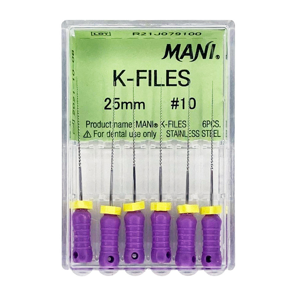 Mani K- Files is an extraordinarily sharp and mirror-like finished edge with high ductility makes for excellent working characteristics. The hard-fiber stainless steel prevents corrosion after repeated cleaning and sterilization.